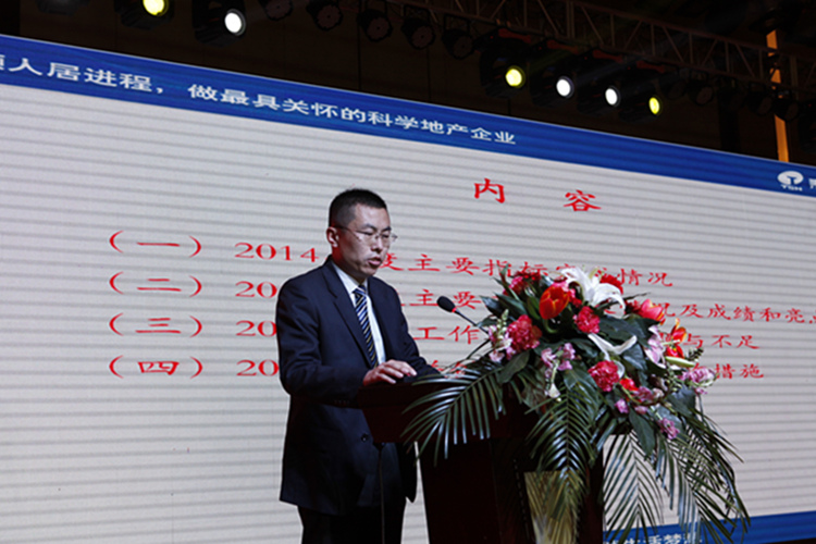會(huì)議隆重表彰了2014年度在不同崗位上作出突出貢獻(xiàn)的先進(jìn)集體和個(gè)人。其中,開發(fā)部、銷售團(tuán)隊(duì)被授予績效鉆石組合獎(jiǎng),綜合辦公室被評為服務(wù)鉆石組合獎(jiǎng)。公司總經(jīng)理助理錢永彩、華府項(xiàng)目部經(jīng)理姬常寶分別作為受表彰人員代表上臺(tái)發(fā)言。