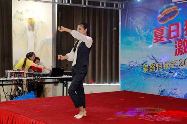 整潔優(yōu)雅的環(huán)境、整齊美觀的桌椅、動(dòng)感活潑的音樂(lè)、繽紛閃耀的燈光、精致可口的甜點(diǎn),使整個(gè)活動(dòng)現(xiàn)場(chǎng)熱鬧而不失穩(wěn)重,溫馨而不失活潑。伴隨著動(dòng)感的音樂(lè),大家紛紛就坐,與周圍的同事熱情交談。上午10時(shí)30分,活動(dòng)準(zhǔn)時(shí)開始。泰盛恒地產(chǎn)總經(jīng)理黃總首先發(fā)表了開場(chǎng)致辭,隨后各部門開始表演精心準(zhǔn)備的節(jié)目?!稊]起袖子加油干》、《我相信》等合唱唱出了氣勢(shì),唱出了希望,《干了這杯酒》、《紅日》等獨(dú)唱唱出了個(gè)性,唱出了風(fēng)采。舞蹈及健身操等節(jié)目也相繼上演,展示了公司員工積極的精神風(fēng)貌。節(jié)目表演過(guò)程中還穿插了精彩的抽獎(jiǎng)環(huán)節(jié),引得現(xiàn)場(chǎng)陣陣歡呼。