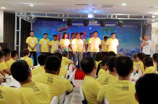 在正式開餐之前,孫董親自主持了問(wèn)答環(huán)節(jié),將分子公司的相關(guān)負(fù)責(zé)人召集到舞臺(tái)上,現(xiàn)場(chǎng)提問(wèn)大家到舒格蘭項(xiàng)目參觀后的感想。先是臺(tái)下員工主動(dòng)回答問(wèn)題,孫董給予了一定的獎(jiǎng)勵(lì),之后,各分子公司相關(guān)負(fù)責(zé)人也發(fā)表了自己的看法,并針對(duì)公司打造“花園式”工地這項(xiàng)任務(wù)表達(dá)了各自的觀點(diǎn),大家紛紛表示,有壓力才有動(dòng)力,將在公司領(lǐng)導(dǎo)的帶領(lǐng)下,進(jìn)一步提高標(biāo)準(zhǔn),實(shí)現(xiàn)每天不一樣。