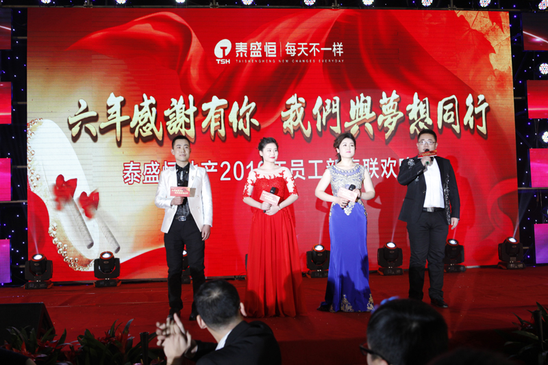 晚會(huì)之前,廣大員工紛紛在簽名墻和祝福墻上進(jìn)行簽名和留言,寫下自己的新年愿望和對(duì)公司的美好祝福。下午四時(shí),現(xiàn)場(chǎng)人員共同觀看了公司的拜年視頻、《與夢(mèng)想同行》主題視頻。隨著開場(chǎng)舞《光耀泰盛恒》的華麗上演,晚會(huì)拉開帷幕。公司總經(jīng)理趙利捷上臺(tái)致答謝詞,表達(dá)了對(duì)員工及其家屬的感謝和祝福,并宣布晚會(huì)正式開始。