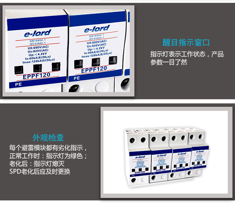 EPPF系列風(fēng)能電源SPD是由多個(gè)單片式限壓?jiǎn)卧M成,廣泛應(yīng)用于風(fēng)能690V交流發(fā)電系統(tǒng)中,對(duì)風(fēng)能發(fā)電機(jī),匯流箱、配電柜及送變器等系統(tǒng)配套設(shè)備進(jìn)行雷電感應(yīng)浪涌防護(hù),能有效防止由雷電感應(yīng)波和線路浪涌沖擊所造成的設(shè)備損壞,最大程度的保證了風(fēng)能發(fā)電系統(tǒng)的穩(wěn)定性和可靠性,保護(hù)風(fēng)能發(fā)電系統(tǒng)穩(wěn)定可靠地運(yùn)行。